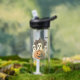 Stay hydrated in spooky style! This Halloween-themed water bottle features three adorable ghosts holding a smiling jack-o'-lantern in front of a haunted house with flying bats. A perfect mix of cute and creepy for fall, parties, or as a Halloween gift!