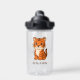 Cute cartoon illustration of a tiger cub sitting. Customizable text.