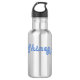 Botella de agua de acero. Disponible en varios colores y en tamaños de 18 onzas o 24 onzas. Ligero y duradero; a prueba de grietas, a prueba de derrames. Se garantiza no dar bebidas de "sabor plástico". Con "TheShineyBear" en letra estilizada.