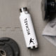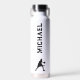 Botella de agua de baloncesto blanco y negro (22 oz.). Personalizar con nombre.