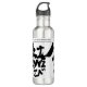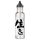 Botella de agua de acero inoxidable con envoltura alrededor del diseño de caligrafía. Caligrafía "Iki Musubi" por Aikido Shihan M. Saotome. Obra de Troy Farrow. Traducción: "Conexión viva"