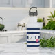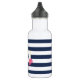 Esta botella de agua personalizada presenta un fondo atrevido de rayas azul marino y blanco, un borde falso dorado y un peón rosa bonito con acuarelas suaves. Coordina con nuestros suministros de oficina de la Marina Stripe & Pink Peony, productos de papel, artículos para el hogar y accesorios. Personalizar con un monograma, nombre o texto de su elección!