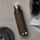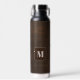 Botella de agua aislada con un diseño de cuero falso marrón oscuro de moda con forma rectangular (opcional) y monograma de su personalizado. Genial como regalo personal para él.
