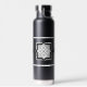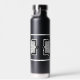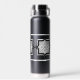Esta botella de agua tiene un diseño geométrico contemporáneo. Este es un patrón simple hecho de cuadrados de colores que se superponen entre sí. El diseño se realiza de forma clara con una banda ancha por encima y por debajo.