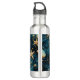 Una botella de agua con un elegante patrón azul con estrella de mar que representa el océano.