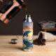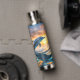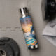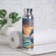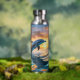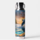 Para los amantes del mar y de toda su belleza, esta botella de bebidas tiene una impresionante imagen de un delfín azul saltando sobre el agua. Un naranja llamativo y una puesta de sol dorada están en el horizonte. ¡Únicamente hermoso!