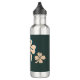 Oscuro Green Lucky Shamrock Clover Dibujando botella de agua del Día de San Patricio. Los tréboles dibujados a mano con cuatro hojas para la suerte en un fondo verde oscuro.