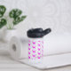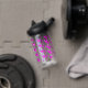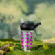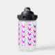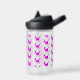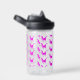 Una manada de dinosaurios rosados desenfrenados atraviesa esta botella de agua.