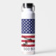 Patriótico Americano DIOS BENDIGO AMERICA Estados Unidos Bandera Botella de agua conjunto con TEXTO de PERSONALIZABLE. La bandera de Stars and Stripes US incluye un esquema de mapa de efecto 3D de los Estados Unidos. En la parte inferior, las palabras DIOS BENDIGA AMÉRICA son PERSONALIZABLE, así que puedes PERSONALIZAR agregando tu nombre. Esta bandera patriótica estadounidense de la botella de agua sería un gran regalo para cualquier festividad norteamericana, como el 4 de julio, Día de Acción de Gracias, Navidades.