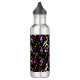 Coloridos símbolos y notas musicales con música, notas, clef, treble, quaver, bajo, crochet sobre fondo negro