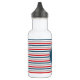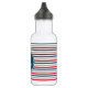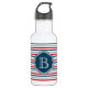 Diseño de temática náutica con decoración monográfica sobre fondo de rayas azules, blancas, rojas y grises