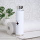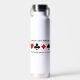 No hay necesidad de ser un ávido jugador de puente duplicado para disfrutar de esta botella de agua con los cuatro trajes de cartas junto con el truismo del puente que dice "Duplicate Bridge A Psychological Game". Un puente duplicado en realidad es un juego de psicología, que implica lógica, memoria y una dosis de comprensión de cómo juega la gente y por qué toma las decisiones de la manera que toma. ¡Haz que otros hagan una doble toma en la mesa del puente la próxima vez que juegues con esta memorable psique del puente diciendo botella de agua!