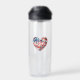 Una botella de agua divertida con agua roja, blanca y azul, junto con "USA". Utilice la plantilla para personalizar. Puede conservar el texto o cambiarlo.