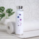 Esta elegante botella de agua está aislada y cuenta con un bonito ilustracion floral en tonos azules y violetas, complementado con iniciales de personalizable para un toque personalizado. Las delicadas flores dibujadas a mano le dan un toque de elegancia, haciendo de esta botella un accesorio perfecto para uso personal o como un regalo cuidadoso y personalizado. El diseño minimalista sobre un fondo blanco resalta el vibrante acento floral, combinando estilo y practicidad para la hidratación diaria.