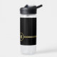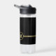 Botella De Agua Elegante oro Monograma personalizado sobre negro