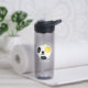 Este equipo colorea una botella de agua con temas de fútbol para chicas o niños y presenta la imagen realista de una pelota de fútbol que tiene paneles negros, dorados y blancos, sobre los que se puede personalizar el monograma o la carta de varsity del atleta - personalizar del nombre de la escuela o club que rodea la parte superior de la pelota de fútbol, nombre del atleta debajo y número de camiseta en los lados de la botella - por katz_d_zynes