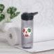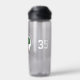 Este equipo colorea una botella de agua relacionada con el fútbol para chicas o niños y presenta la imagen realista de una pelota de fútbol roja, verde y blanca, en la que se puede personalizar el monograma o la carta de varsity del atleta - personalizar del nombre de la escuela o club que rodea la parte superior de la pelota de fútbol, nombre del atleta debajo y número de camiseta a los lados de la botella - por katz_d_zynes