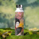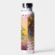 Esta botella de agua tiene un hermoso japonés con la escena de una casa japonesa, una mujer japonesa con ropa tradicional y flores de Sakura.