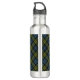 Insignia de Campbell escudo rodeada de una correa y hebilla sobre fondo tartán. Texto personalizado.