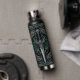 Diseño celta en tonos verdes con una espada corta y nudos celtas.