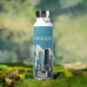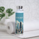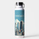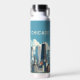 Botella de agua de Chicago que presenta el paisaje y el horizonte de Chicago, Illinois. Diseño moderno. Texto personalizado. Cambie el texto del frasco de agua o déjelo como está. Usa la plantilla para crear tu propia botella de agua de perfil de Chicago.