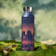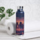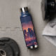 Botella de agua de Los Ángeles con el paisaje y el paisaje de Los Ángeles, California. Los colores azul y naranja. Diseño moderno. Texto personalizado. Cambie el texto del frasco de agua o manténgalo tal como está. Usa la plantilla para crear tu propia botella de agua de perfil de Los Ángeles.