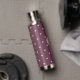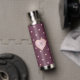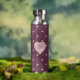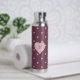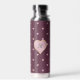 Los corazones rosados forman un patrón de puntos de polka en un rico fondo de vino del puerto. Escondirse en algunos corazones es una estrella dorada con un brillo metálico emulado, creando un diseño juguetón y lindo. Personalizar el monograma con su inicial para crear una botella de agua que sea única para su uso.