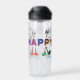 La imagen muestra la palabra "FELIZ" escrita en letras coloridas y peludas, cada una con su propio matiz vibrante. La "H" es púrpura, la "A" es rosa, la "P" es azul, la "P" es naranja y la "Y" es amarilla. Algunas letras tienen caras y miembros personalizados, añadiendo un toque divertido y animado. La "H" hace un gesto a mano, mientras que una de las olas de la "P" es alegre. Las "A" y las "Y" tienen piernas con zapatos, lo que aumenta su apariencia animada. El telón de fondo está formado por un cielo de colores pastel con nubes onduladas y estrellas brillantes que crean un ambiente alegre y caprichoso. La composición general exuda alegría y positividad, lo que lo hace perfecto para diseños que evocan felicidad y diversión.