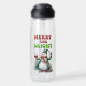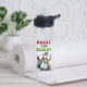 Un divertido y alegre diseño de Navidades exhibe a un muñeco de nieve alegre vestido con un largo abrigo verde con un sombrero superior a juego, bufanda roja y mitones. Él sostiene un vaso de vino tinto en una mano y un vino blanco en la otra. El texto rojo y verde festivo dice: "Feliz y brillante". Este diseño está disponible en una variedad de productos, lo que lo convierte en un regalo perfecto para los amantes del vino.