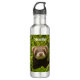 Botella de agua personalizada con una adorable fotografía con un pequeño hurón marrón parado en un pasto largo. ¡Cuidado como puede ser!