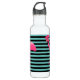Botella de agua Flamingo Rosa Black & Aqua Stripe