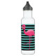Bonito flamingo rosa personalizado botella de agua negro y raya de agua