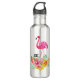 Flamingo rosa y ramo de flores tropicales y monograma de personalizable.