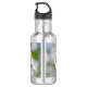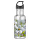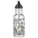 Flor de cerezo blanco contra el fondo multicolor borroso. Belleza de primavera. Espuma blanca y verde de un jardín en plena floración. Impresiones y regalos para diversión y buen humor. Botella de agua para cualquiera