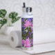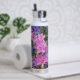 Mantenga su bebida caliente o fría donde quiera que vaya con esta botella de agua insulada al vacío, de moda, que cuenta con una imagen fotográfica de flores rosadas y violetas de Rododendrón. ¡Un bonito diseño floral! Seleccione el color y el tamaño de su botella de agua.