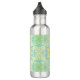 Botella De Agua Flores de jardín retro en verde y amarillo