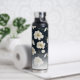 Botella De Agua Flores de oro blanco, monograma de nombre personal