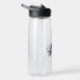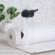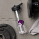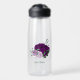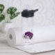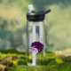 Hermosa botella romántica de agua con flores moradas y algunas hojas verdes. PARA OBTENER MÁS PRODUCTOS COINCIDENTES, haga clic en la colección de arriba o póngase en contacto conmigo