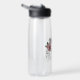 Botella de agua única con flores rosadas románticas y algunas hermosas hojas verdes.