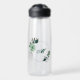 Botella de agua única y hermosa con flores románticas esmeralda y verde suave y hojas verdes