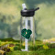 Botella De Agua flores verdes esmeraldas hojas de oro