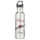 Personalice esta botella única de agua de acero de flor y flecha. Cuenta con una flecha enclavada entre las flores rosadas, moradas y crema de Bonito con plumas moradas y las palabras Motivadoras... "¡Fe, esperanza y amor"!
