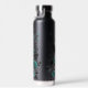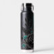 Botella De Agua Flores y plumas negras y Verde azuladas