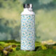 Botella De Agua fondo blanco con flores azules y pulga verde