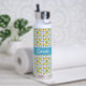 This custom name boho chic yellow lemons and blue French country tile pattern with monogram name would look beautiful while you are working out!