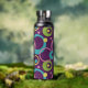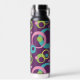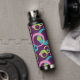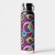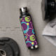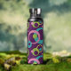 Un fondo violento morado está adornado con un patrón divertido de círculos, puntos y anillos de colores vivos, como el rosa, el verde, el azul y el amarillo.
