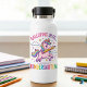 Get your little one ready for their big first day with a touch of magic! This adorable white stainless steel water bottle features a cheerful cartoon unicorn with a vibrant rainbow mane and tail, excitedly galloping through clouds and sparkles while holding a pencil in its mouth. The playful, curved text reads "GALLOPING INTO KINDERGARTEN" in pink and multi-colored rainbow letters.