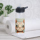 Un divertido y caprichoso ilustracion en una botella de agua para uso diario.
