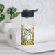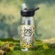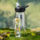 Botella De Agua Gato gris y blanco gitano sentado en flores