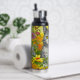 Bonito colorido gato caprichoso y flores de arte floral amarillo. Agregar nombre o miembro de la familia en el área personalizada.